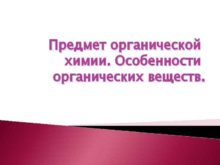 Предмет органической химии Особенности органических веществ Химические