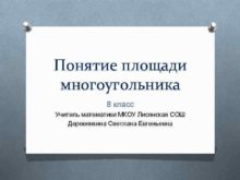 Понятие площади многоугольника 8 класс Учитель математики МКОУ