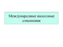 Международные налоговые отношения Международные отношения в налоговой