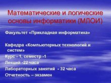 Математические и логические основы информатики МЛОИ Факультет Прикладная