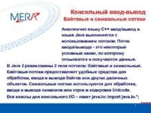 Консольный ввод-вывод Байтовые и символьные потоки Аналогично языку