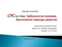 Кафедра гистологии СРС на тему Эмбриология человека Критические