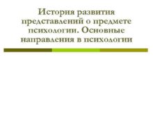 История развития представлений о предмете психологии Основные направления