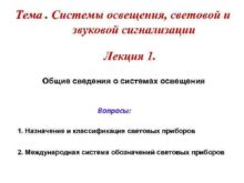 Тема Системы освещения световой и звуковой сигнализации Лекция