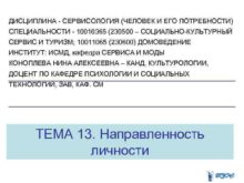 ДИСЦИПЛИНА — СЕРВИСОЛОГИЯ ЧЕЛОВЕК И ЕГО ПОТРЕБНОСТИ СПЕЦИАЛЬНОСТИ