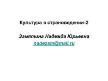 Культура в страноведении-2 Замятина Надежда Юрьевна nadezam mail ru