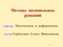 Методы оптимальных решений Кафедра Математика и информатика Лектор