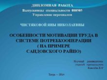 ДИПЛОМНАЯ РАБОТА Выпускницы специальности 080505 Управление персоналом ЧИСТЯКОВОЙ