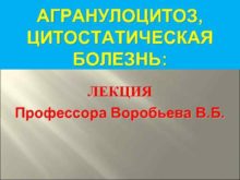 АГРАНУЛОЦИТОЗ ЦИТОСТАТИЧЕСКАЯ БОЛЕЗНЬ ЛЕКЦИЯ Профессора Воробьева В Б