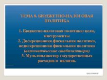 ТЕМА 8 БЮДЖЕТНО-НАЛОГОВАЯ ПОЛИТИКА 1 Бюджетно-налоговая политика цели