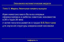 Экономико-математические модели Тема 5 Модель Леонтьева затраты-выпуск Идея