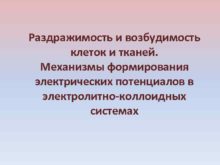 Раздражимость и возбудимость клеток и тканей Механизмы формирования