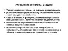 Управление качеством Вводная Ужесточенная конкуренция на мировом