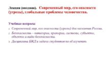 Лекция вводная Современный мир его опасности угрозы глобальные