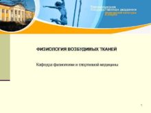 ФИЗИОЛОГИЯ ВОЗБУДИМЫХ ТКАНЕЙ Кафедра физиологии и спортивной медицины