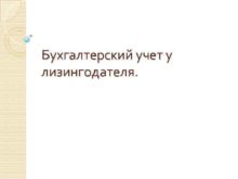 Бухгалтерский учет у лизингодателя Объектами лизинговых отношений
