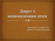 Декрет о национализации аптек Выполнила студентка 325 группы