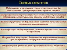 Типовые недостатки Подключение к открытым сетям осуществляется без
