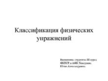 Классификация физических упражнений Выполнила студентка III курса ФКПСР