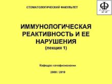 СТОМАТОЛОГИЧЕСКИЙ ФАКУЛЬТЕТ ИММУНОЛОГИЧЕСКАЯ РЕАКТИВНОСТЬ И ЕЕ НАРУШЕНИЯ лекция