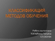 КЛАССИФИКАЦИЯ МЕТОДОВ ОБУЧЕНИЯ Работу выполнила ТОПАЙкина Татьяна СП-343104