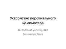Устройство персонального компьютера Выполнила ученицы 8 В Токмакова