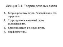 Лекция 3 -4 Теория речевых актов 1 Теория