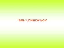 Тема Спинной мозг Строение спинного мозга Спинной
