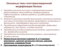 Основные типы посттрансляционной модификации белков 1 Присоединение различных