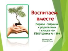 Воспитаем вместе Первое собрание с родителями 1 класса