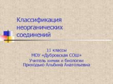 Классификация неорганических соединений 11 классы МОУ Дубровская СОШ