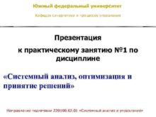 Южный федеральный университет Кафедра синергетики и процессов управления
