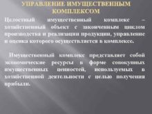 УПРАВЛЕНИЕ ИМУЩЕСТВЕННЫМ КОМПЛЕКСОМ Целостный имущественный комплекс хозяйственный