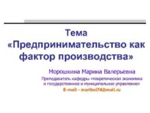 Тема Предпринимательство как фактор производства Морошкина Марина Валерьевна