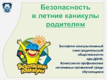 Безопасность в летние каникулы родителям Экспертно-консультативный совет родительской