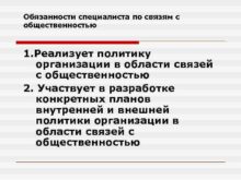 Обязанности специалиста по связям с общественностью 1 Реализует