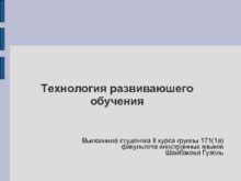 Технология развиваюшего обучения Выполнила студентка II курса группы