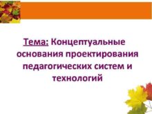 Тема Концептуальные основания проектирования педагогических систем и технологий