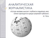 АНАЛИТИЧЕСКАЯ ЖУРНАЛИСТИКА Когда человек мыслит глубоко и серьёзно