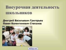 Внеурочная деятельность школьников Дмитрий Васильевич Григорьев Павел Валентинович