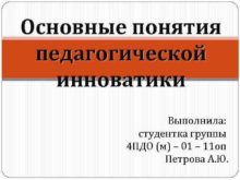 Основные понятия педагогической инноватики Выполнила студентка группы 4