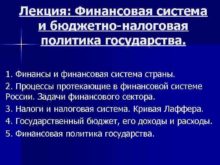 Лекция Финансовая система и бюджетно-налоговая политика государства 1