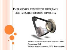 РАЗРАБОТКА РЕМЕННОЙ ПЕРЕДАЧИ ДЛЯ МЕХАНИЧЕСКОГО ПРИВОДА Работу выполнил