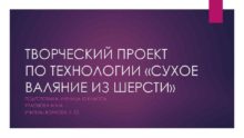 ТВОРЧЕСКИЙ ПРОЕКТ ПО ТЕХНОЛОГИИ СУХОЕ ВАЛЯНИЕ ИЗ ШЕРСТИ