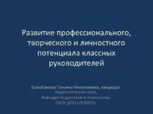 Развитие профессионального творческого и личностного потенциала классных руководителей