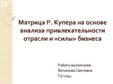 Матрица Р Купера на основе анализа привлекательности отрасли