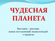 ЧУДЕСНАЯ ПЛАНЕТА Выставка реклама новых поступлений энциклопедий