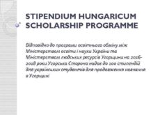 STIPENDIUM HUNGARICUM SCHOLARSHIP PROGRAMME Відповідно до програми освітнього