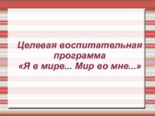 Целевая воспитательная программа Я в мире