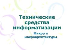 Технические средства информатизации Микро и макроархитектуры МИКРОПРОЦЕССОР